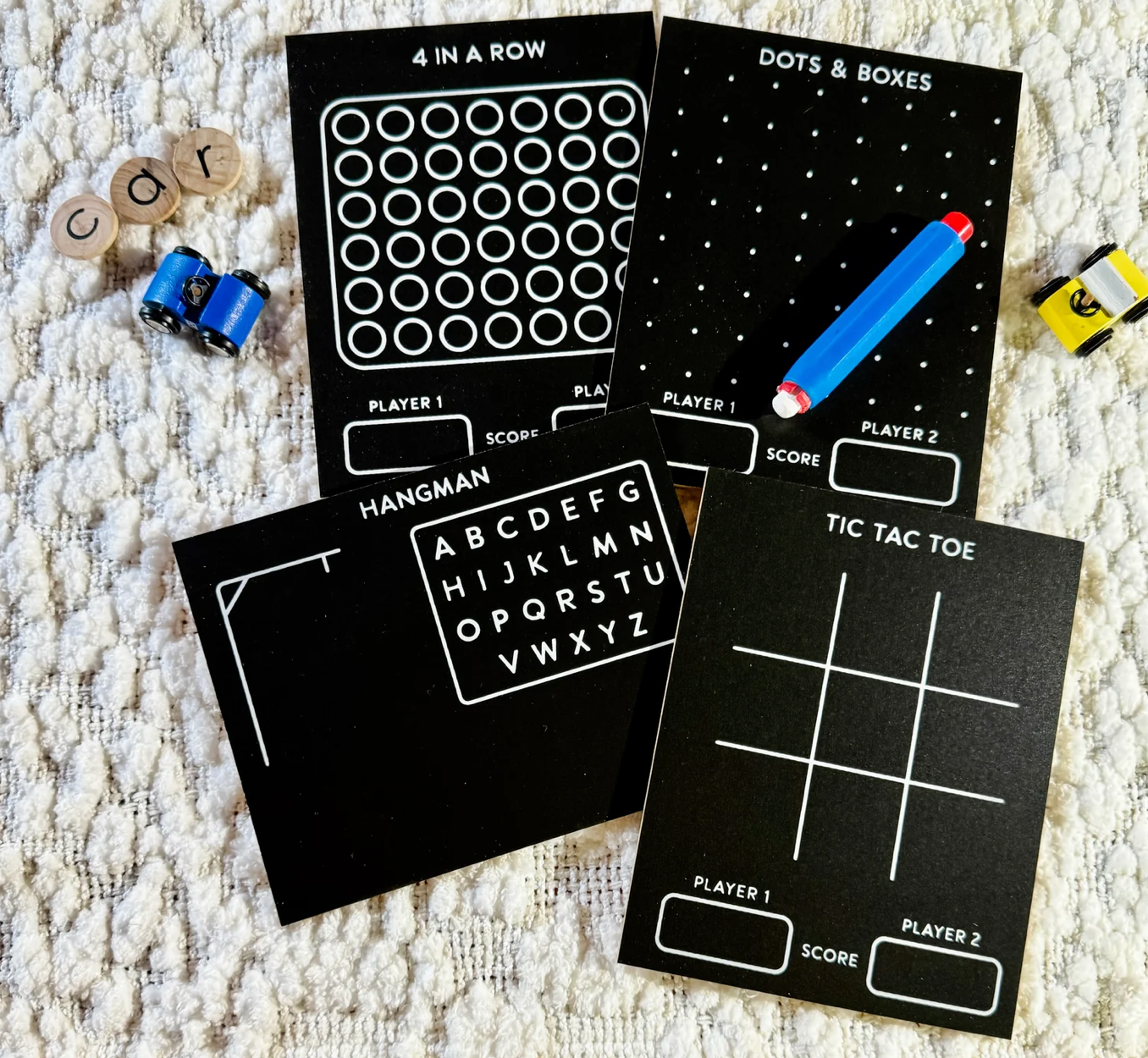 Experience hours of screen-free entertainment for your child with our Classic Games Chalkboard Travel Set! Perfect for on-the-go, these timeless games are easily playable and perfect for use in the car, at home, or anywhere you go!