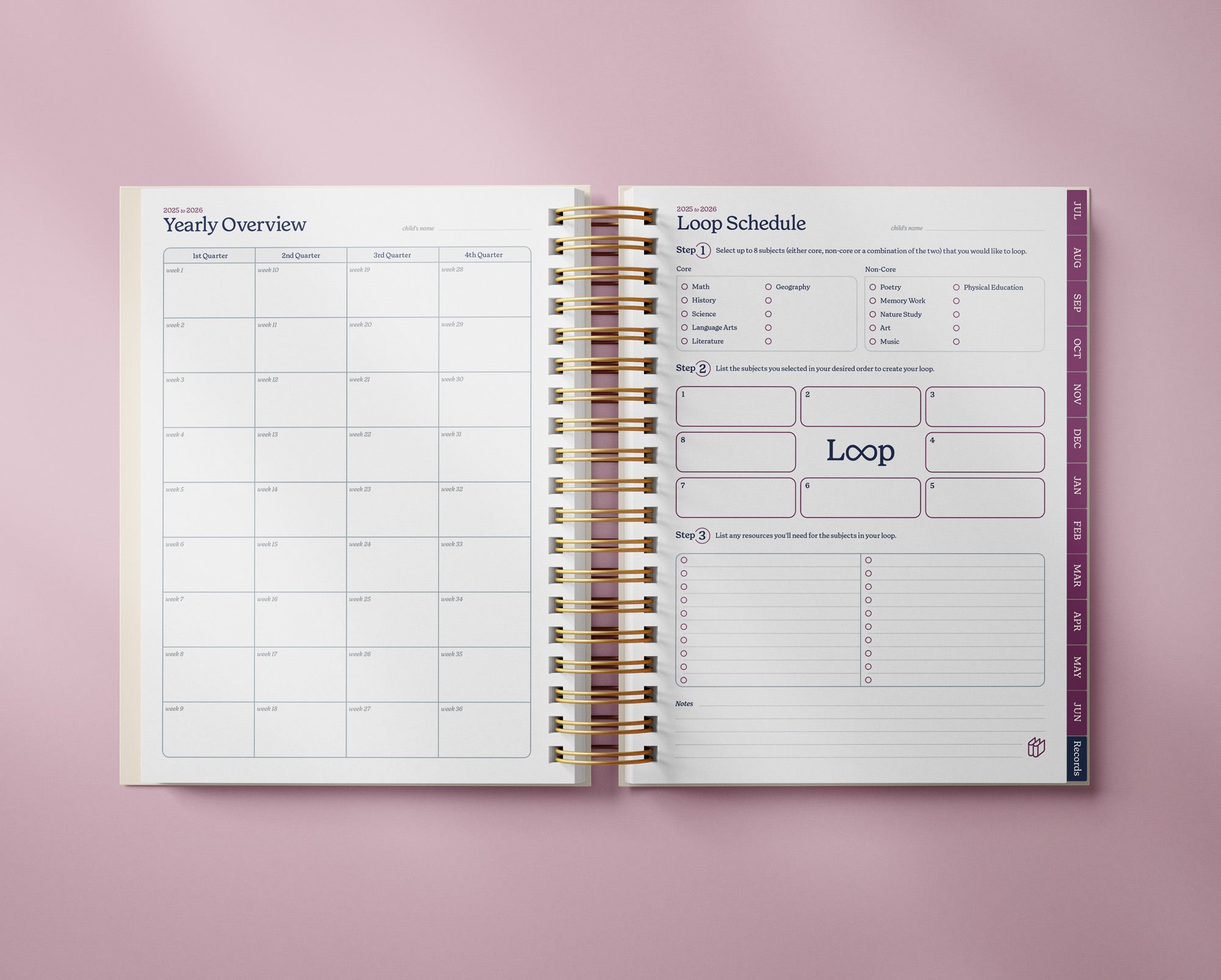 The Well Ordered Homeschool Planner is specially designed to meet the demands of busy homeschool moms like you. Every page has been carefully crafted so you can tackle things like lesson planning, loop scheduling and record keeping with ease; and because we know how demanding your job as a mom and teacher can be, we made sure that each and every page wasn't just beautiful to use, but beautiful to look at, too.