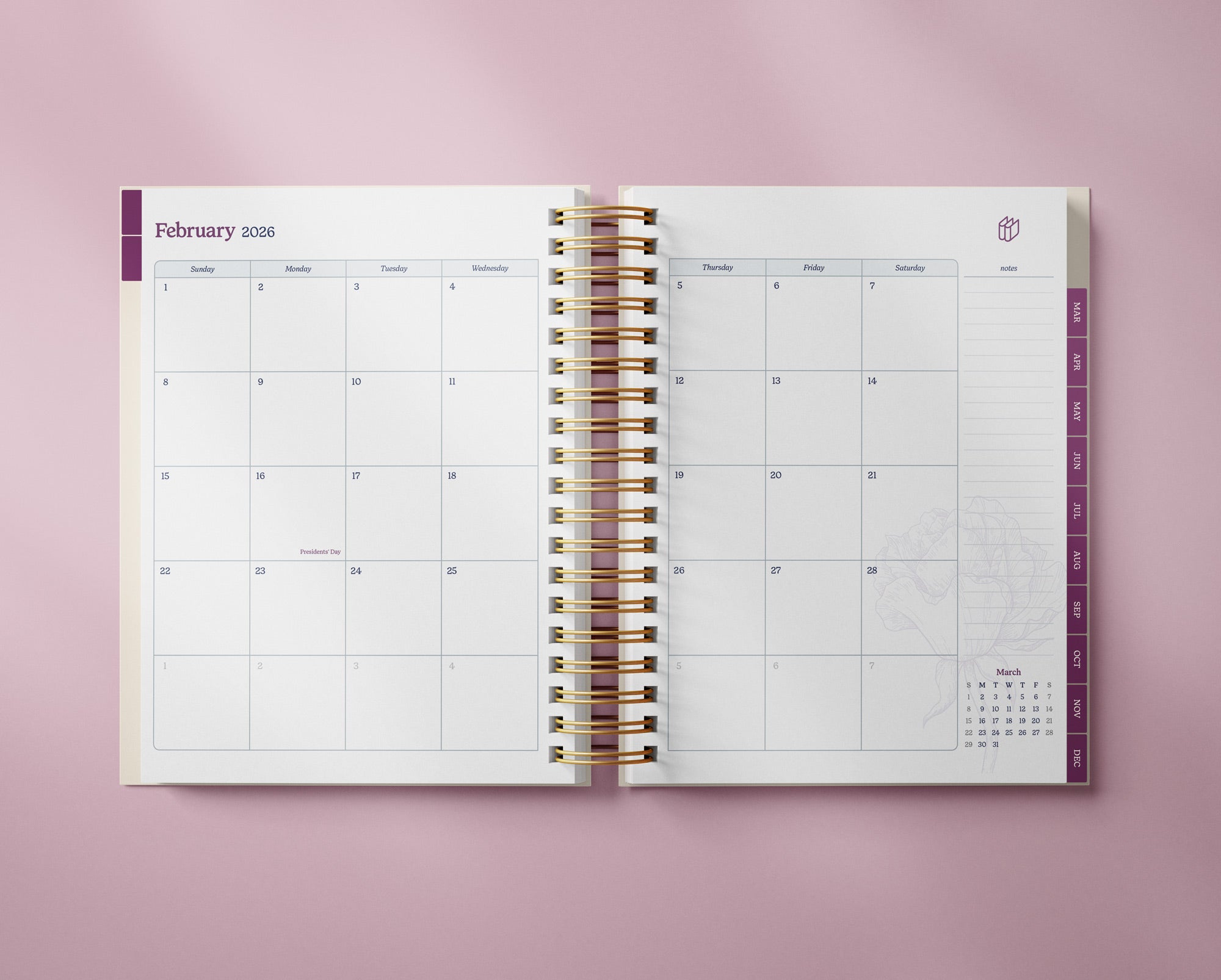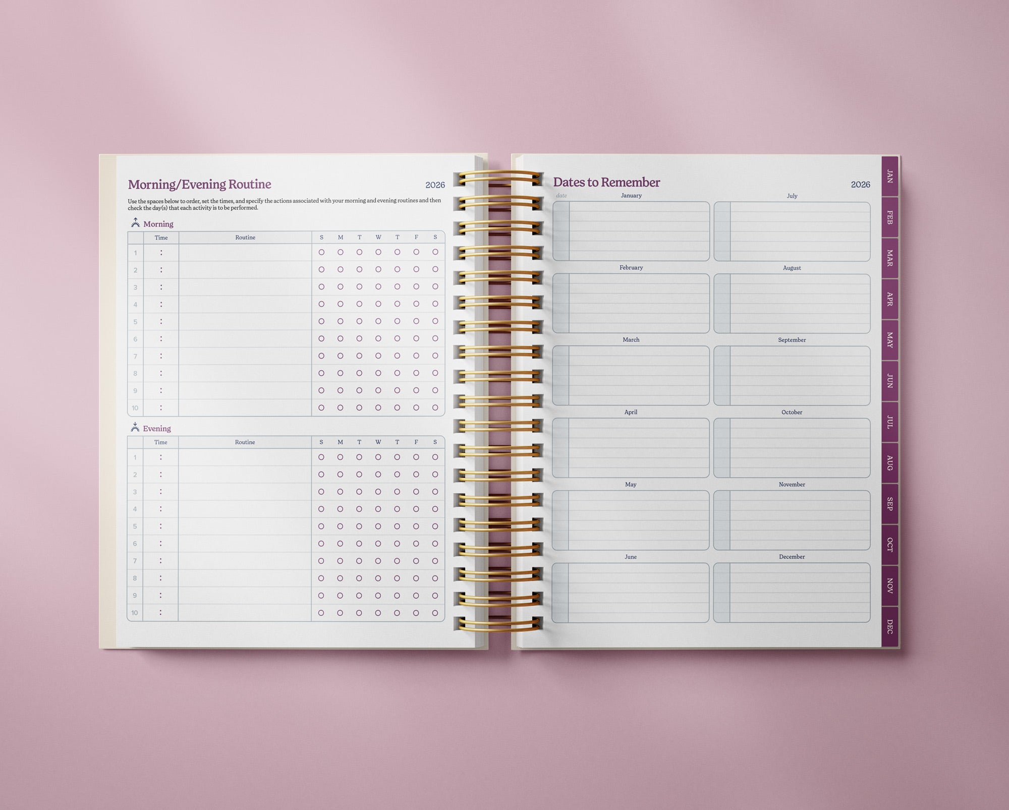 - Dated edition for the year of 2026 (planner begins in January '26 and ends in December '26).