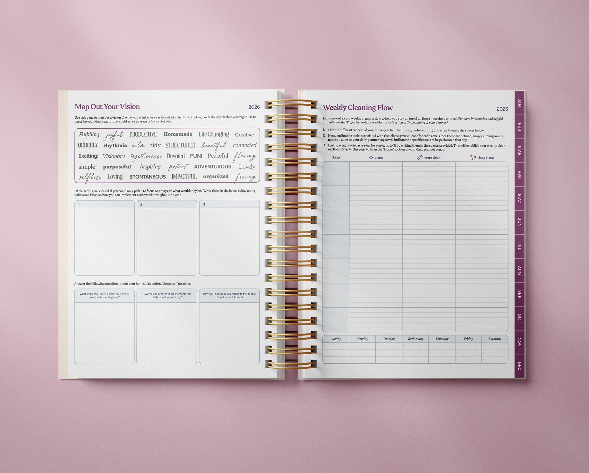- Unique "Cleaning Flow" page helps you tailor a cleaning routine that works for you and that integrates seamlessly with your daily planner pages.